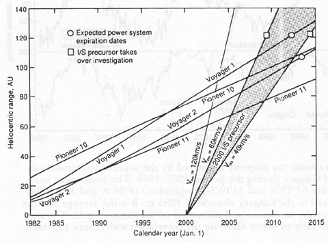 圖十三、預期中遠航太空船與探針的行程距離。